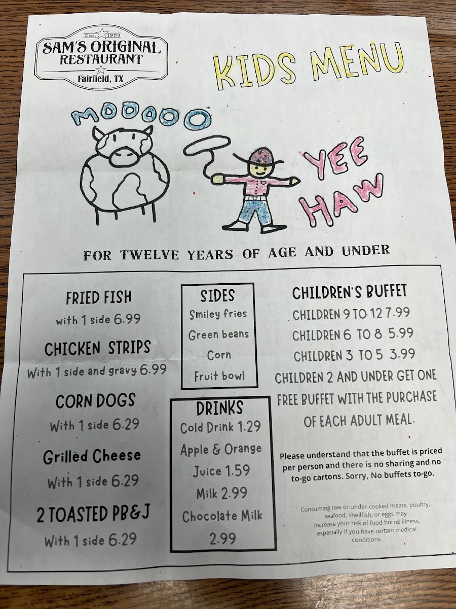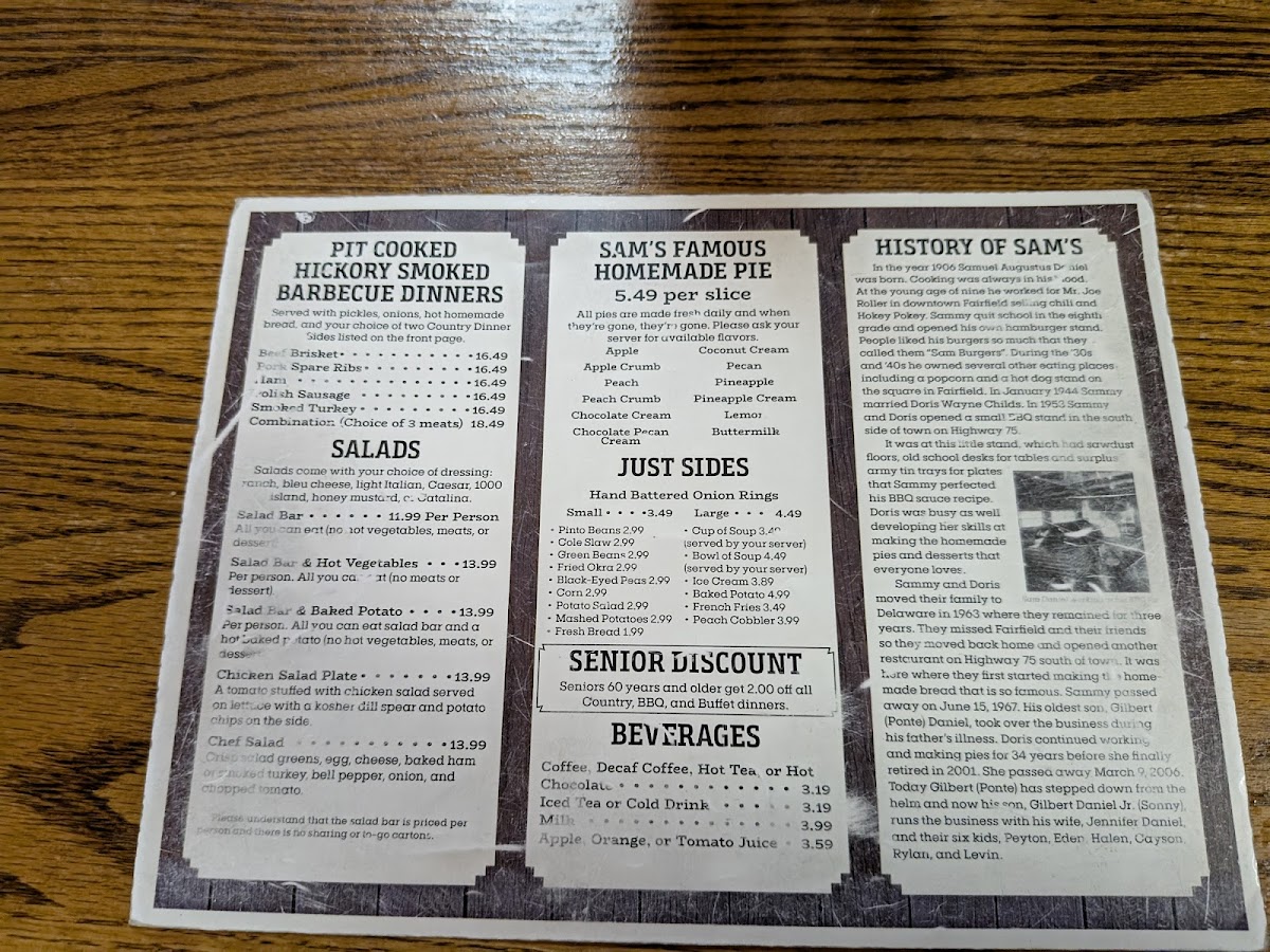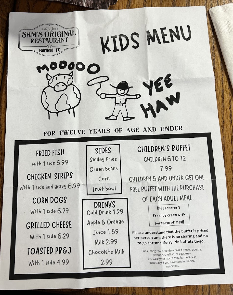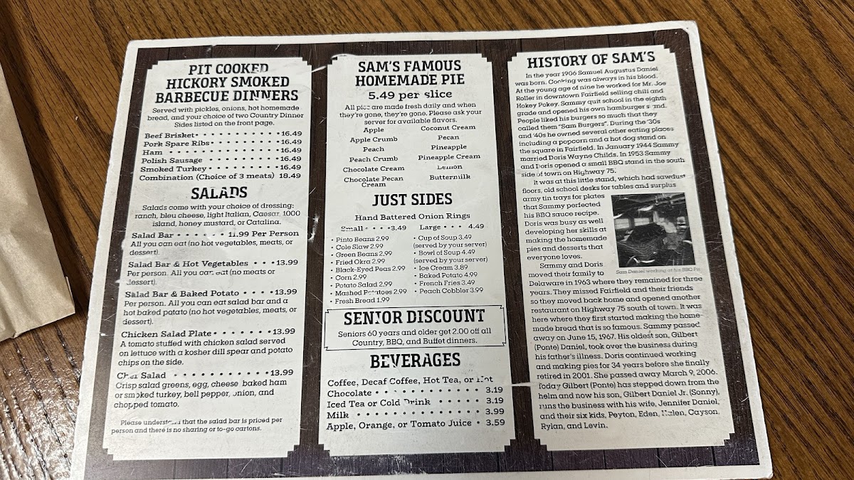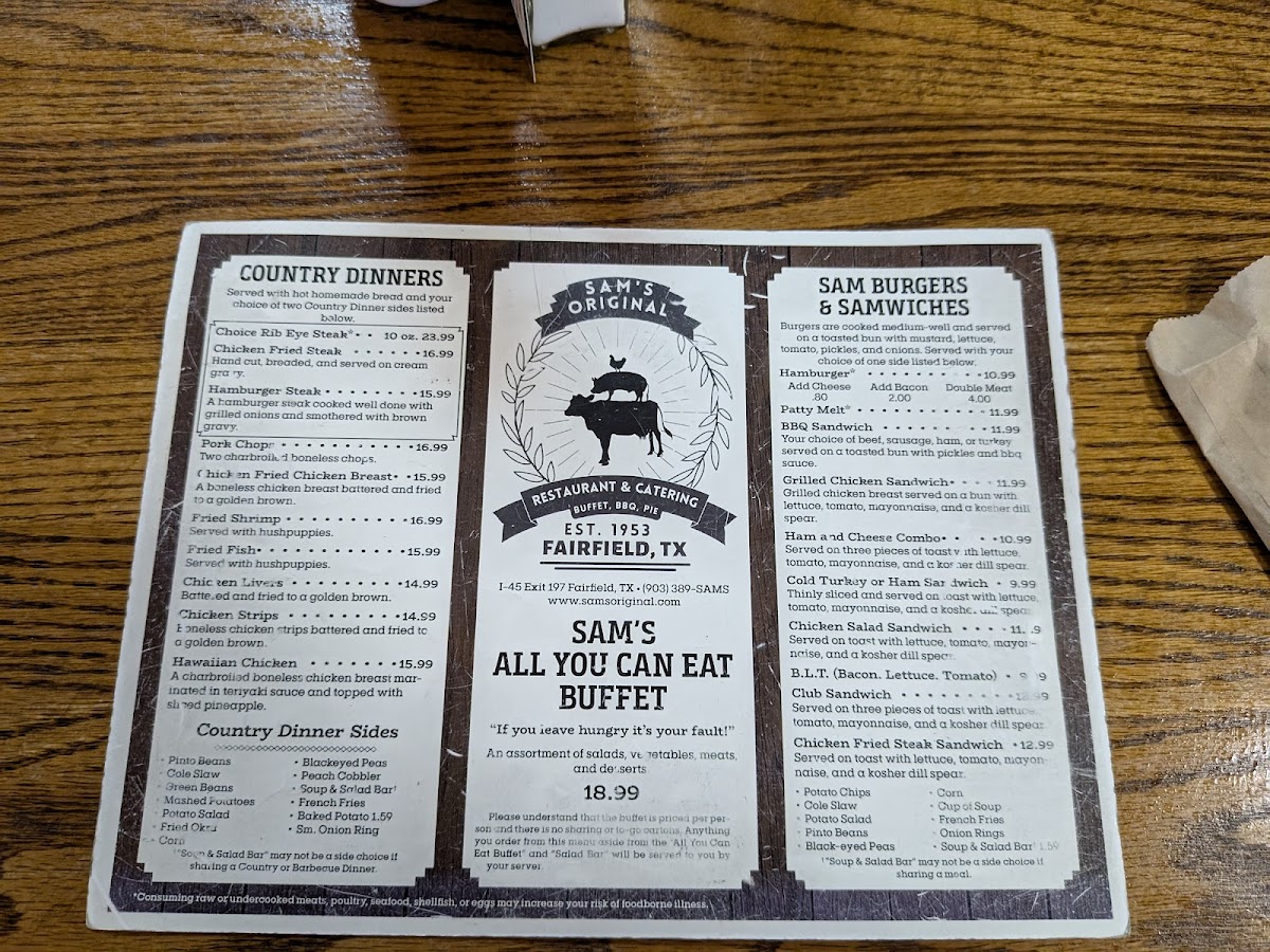 Welcome to Sam's Original Restaurant, a beloved roadside haven located at 390 Interstate 45 Frontage Road in Fairfield, Texas. Here, the charm of Southern hospitality meets a delectable assortment of comfort food that keeps diners returning for more. The highlight of the menu is undoubtedly the buffet, featuring freshly prepared salads, savory main courses, and an impressive selection of desserts, including the cherished Coconut Cream Pie.